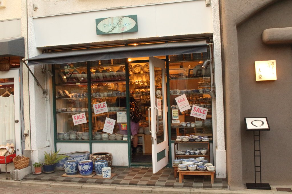 In the suburb of Kichijoji is a small shop called Puku Puku. They sell antique ceramics including items from the early Shōwa (1926–89) period, through Taishō (1912–26) and Meiji (1868–1912) and all the way back to old Edo (1603–1868). Customers know to go to this store for the traditional homewares they sell.